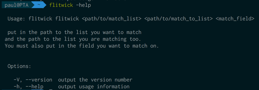 Flitwick is a simple CLI that I am working on to solve the problem that I seemingly get every day. The use case is I have one list of emails in a `.csv` file and I want to know if those emails exists on another list in a `.csv` file. Flitwick takes the two lists, compares them, and spits out the rest in `output.csv` file. I am currently working on getting the match list to match up the properties from the match-to list. I also hoping to create a spertale library to use in other projects.